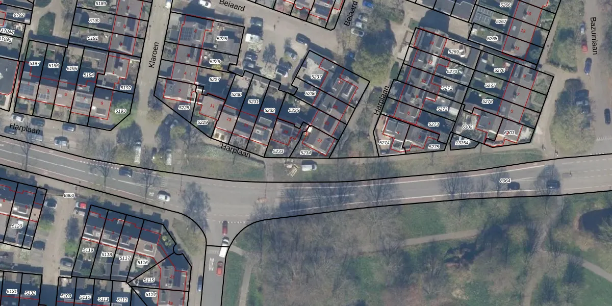 Gebruik de zoekbalk of klik op een perceel om informatie over het perceel te bekijken.