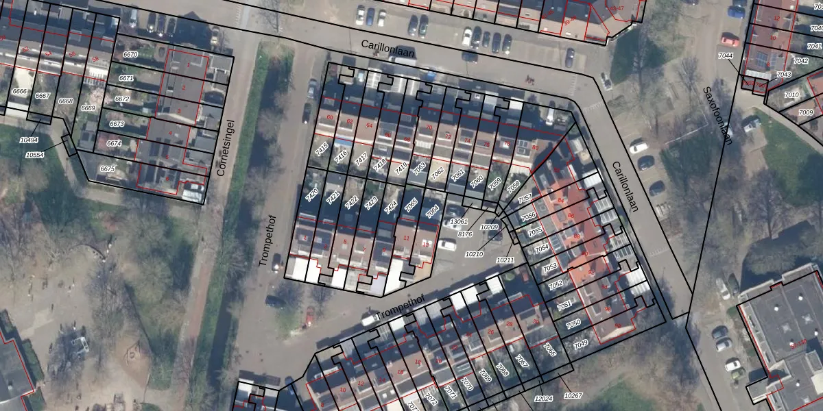 Gebruik de zoekbalk of klik op een perceel om informatie over het perceel te bekijken.