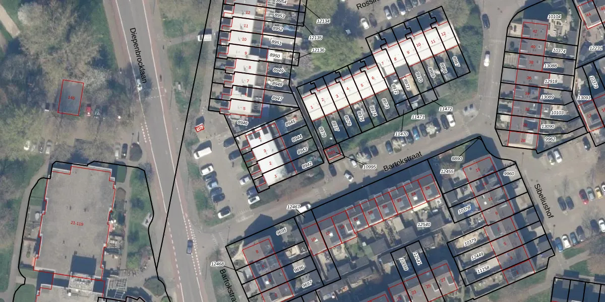 Gebruik de zoekbalk of klik op een perceel om informatie over het perceel te bekijken.