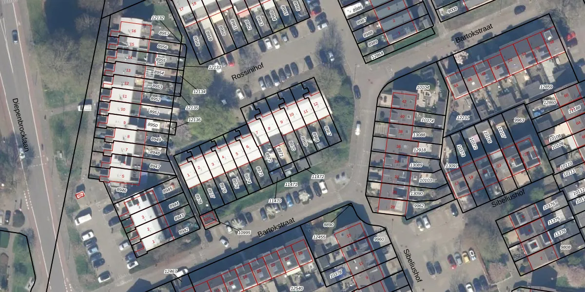 Gebruik de zoekbalk of klik op een perceel om informatie over het perceel te bekijken.