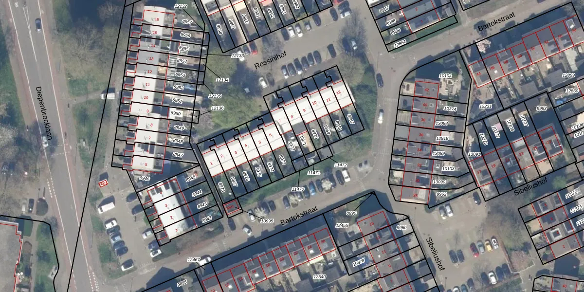 Gebruik de zoekbalk of klik op een perceel om informatie over het perceel te bekijken.