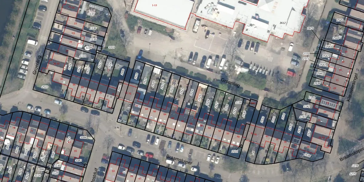 Gebruik de zoekbalk of klik op een perceel om informatie over het perceel te bekijken.