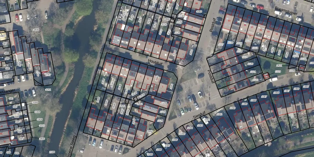 Gebruik de zoekbalk of klik op een perceel om informatie over het perceel te bekijken.