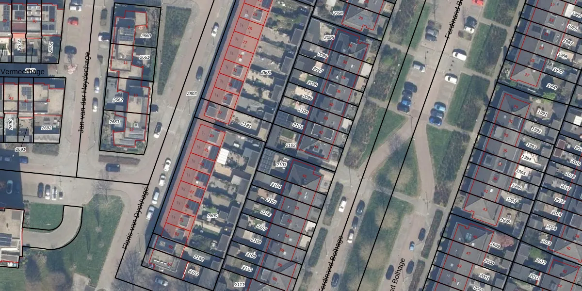 Gebruik de zoekbalk of klik op een perceel om informatie over het perceel te bekijken.