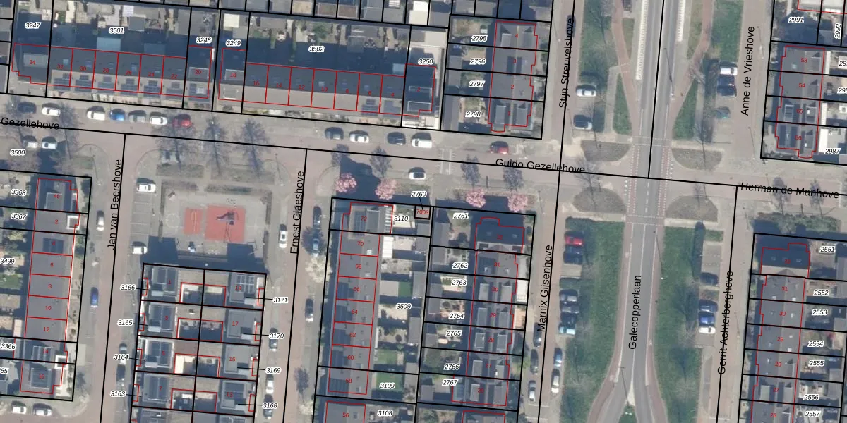 Gebruik de zoekbalk of klik op een perceel om informatie over het perceel te bekijken.
