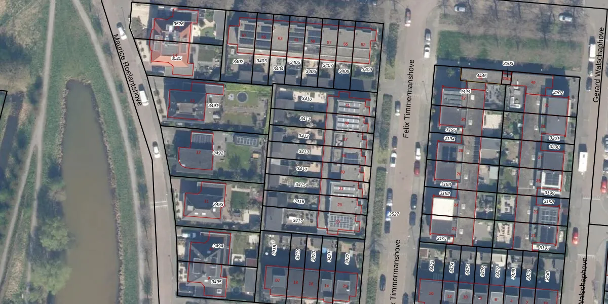 Gebruik de zoekbalk of klik op een perceel om informatie over het perceel te bekijken.