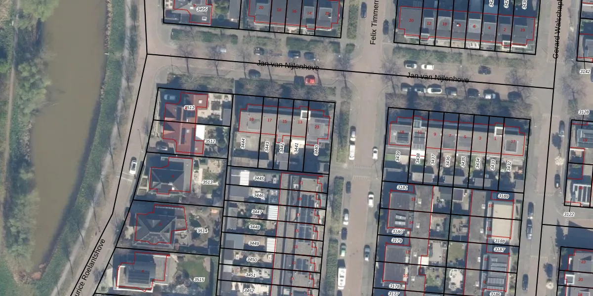 Gebruik de zoekbalk of klik op een perceel om informatie over het perceel te bekijken.