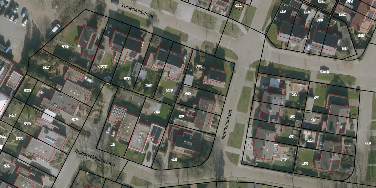 Gebruik de zoekbalk of klik op een perceel om informatie over het perceel te bekijken.