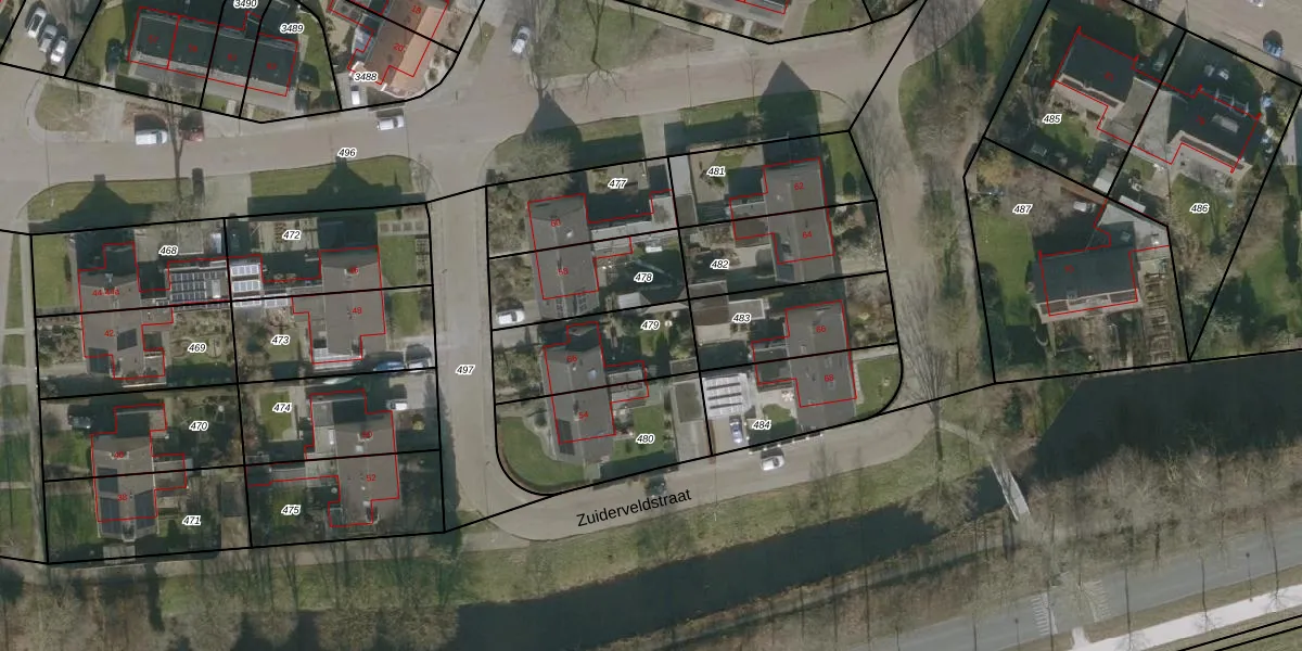 Gebruik de zoekbalk of klik op een perceel om informatie over het perceel te bekijken.