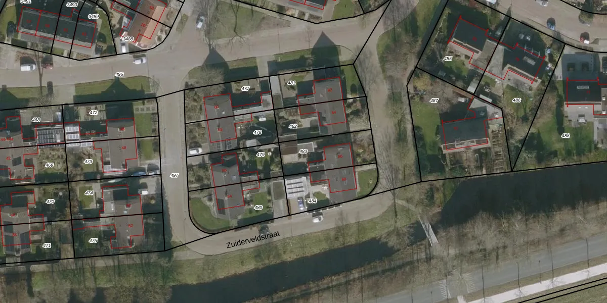 Gebruik de zoekbalk of klik op een perceel om informatie over het perceel te bekijken.