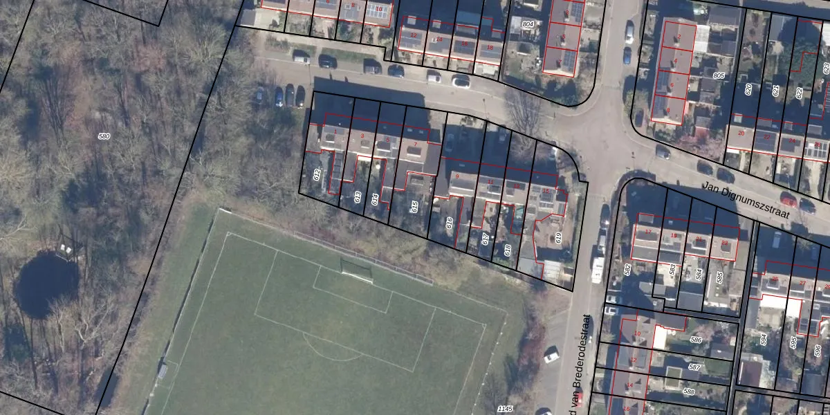 Gebruik de zoekbalk of klik op een perceel om informatie over het perceel te bekijken.
