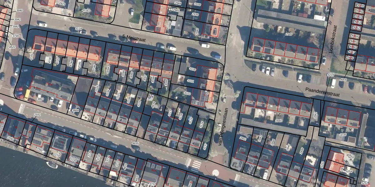 Gebruik de zoekbalk of klik op een perceel om informatie over het perceel te bekijken.