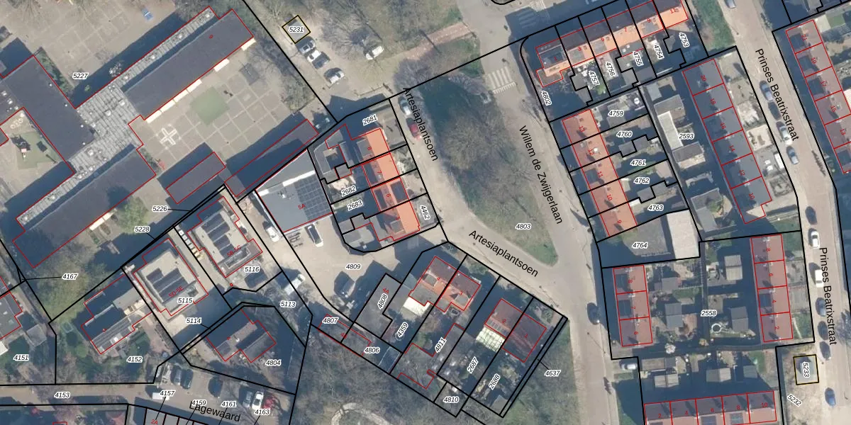 Gebruik de zoekbalk of klik op een perceel om informatie over het perceel te bekijken.