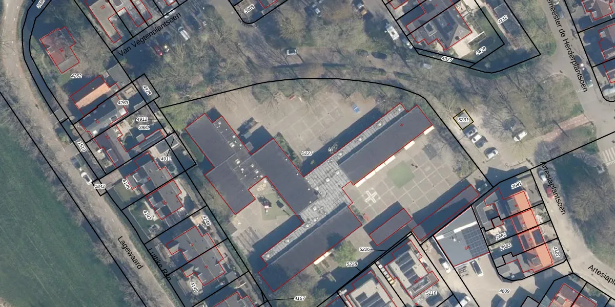 Gebruik de zoekbalk of klik op een perceel om informatie over het perceel te bekijken.
