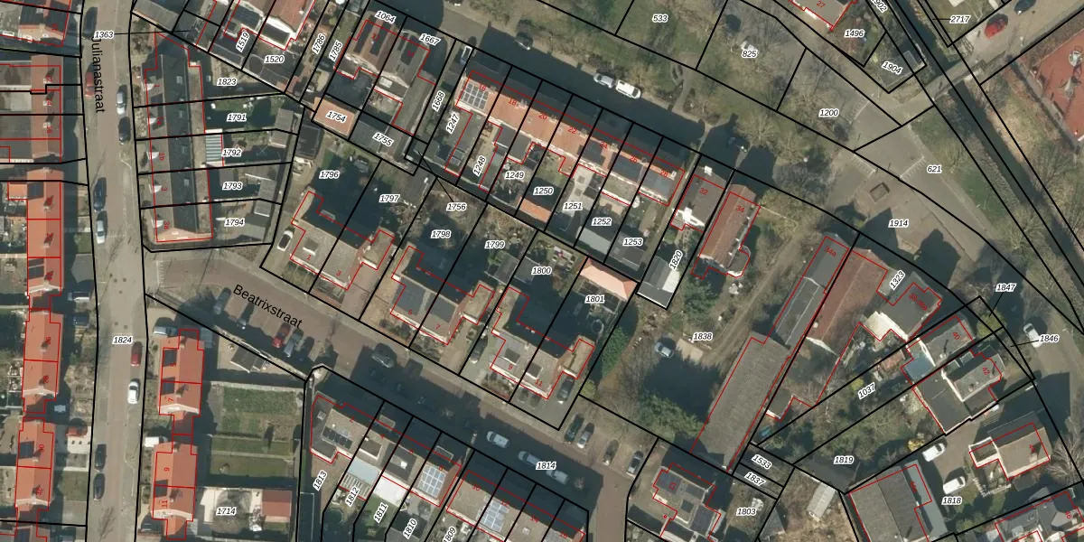 Gebruik de zoekbalk of klik op een perceel om informatie over het perceel te bekijken.
