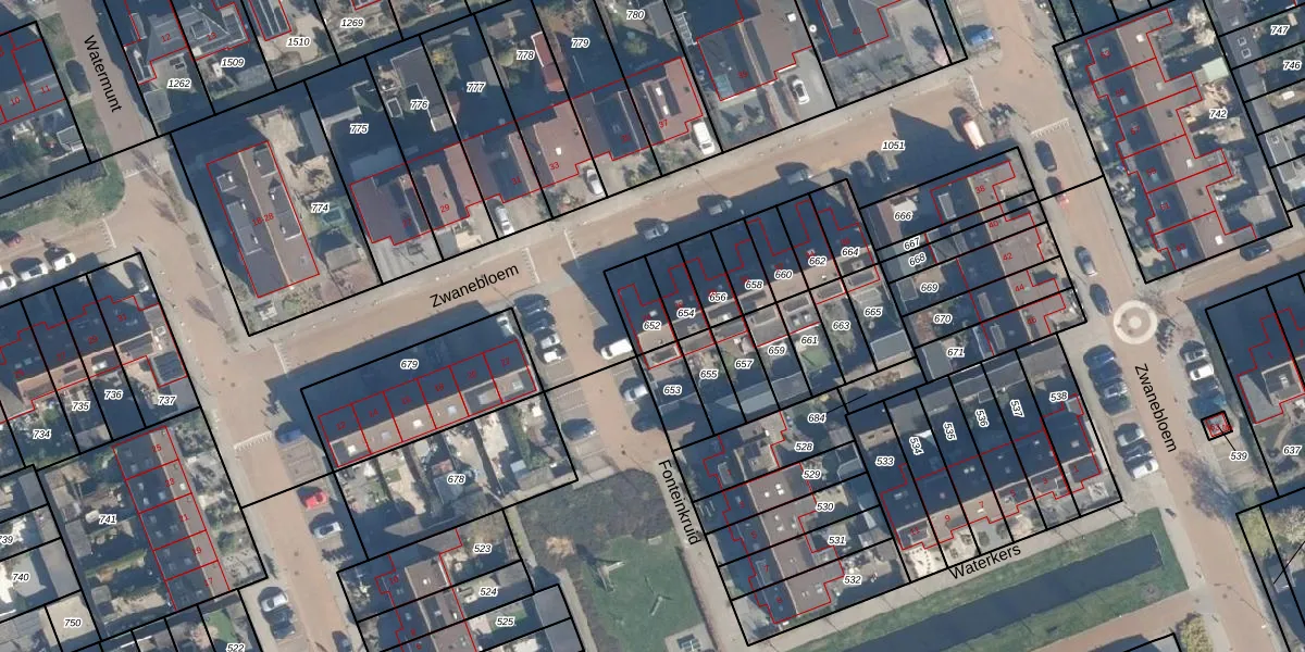 Gebruik de zoekbalk of klik op een perceel om informatie over het perceel te bekijken.