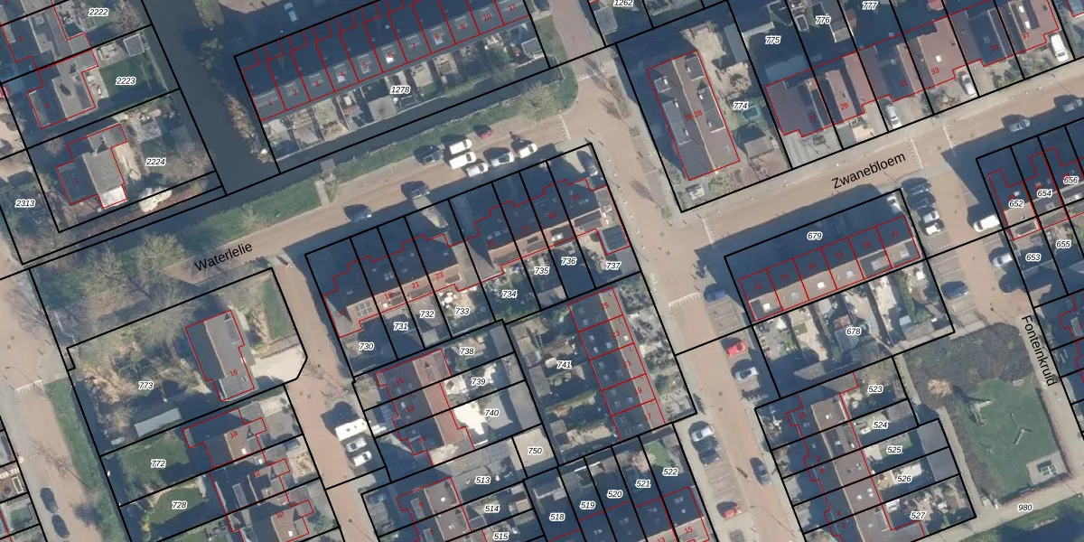 Gebruik de zoekbalk of klik op een perceel om informatie over het perceel te bekijken.
