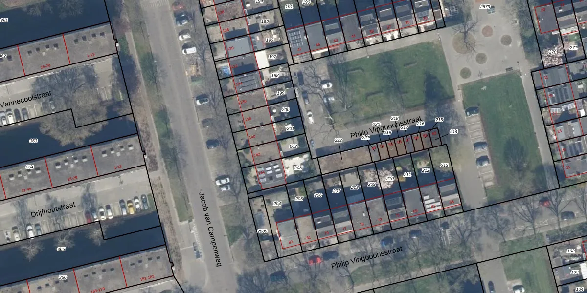 Gebruik de zoekbalk of klik op een perceel om informatie over het perceel te bekijken.