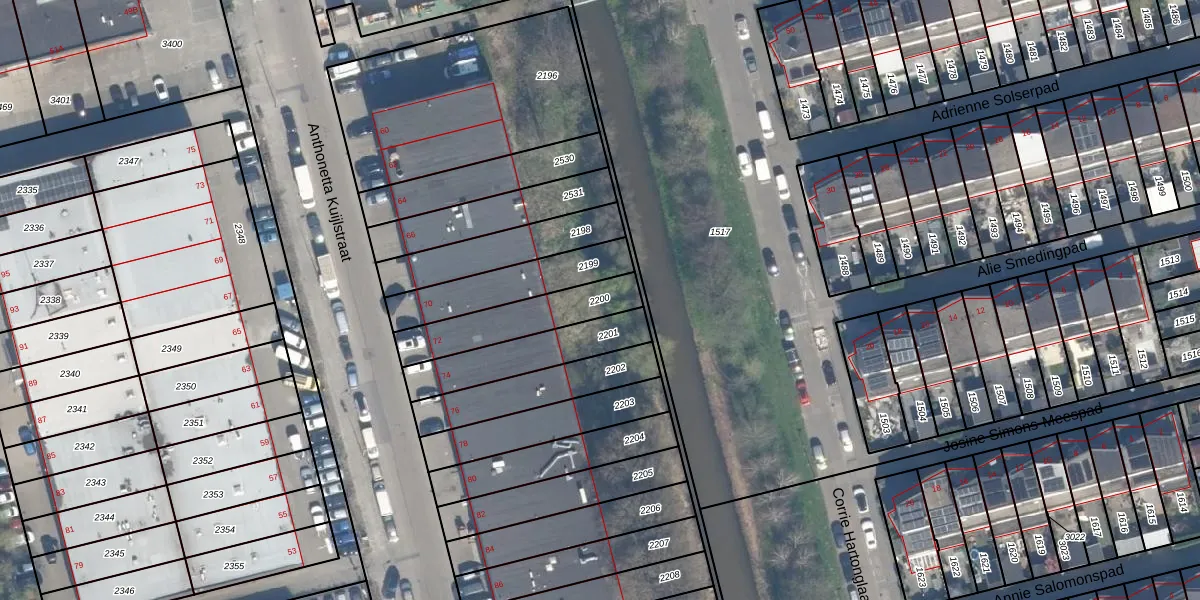 Gebruik de zoekbalk of klik op een perceel om informatie over het perceel te bekijken.