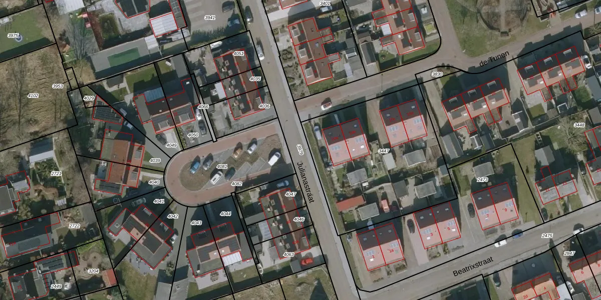 Gebruik de zoekbalk of klik op een perceel om informatie over het perceel te bekijken.