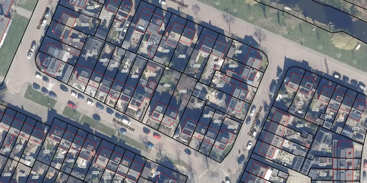 Gebruik de zoekbalk of klik op een perceel om informatie over het perceel te bekijken.