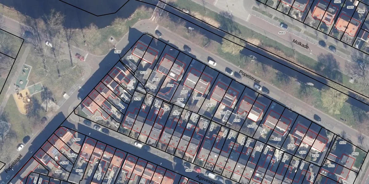 Gebruik de zoekbalk of klik op een perceel om informatie over het perceel te bekijken.