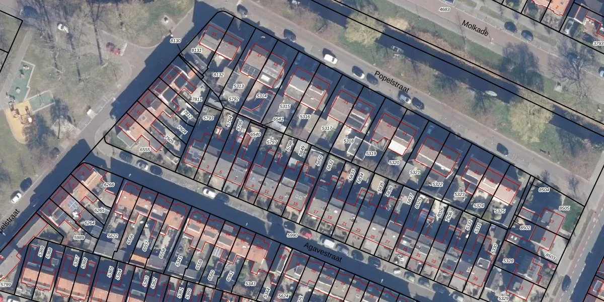 Gebruik de zoekbalk of klik op een perceel om informatie over het perceel te bekijken.