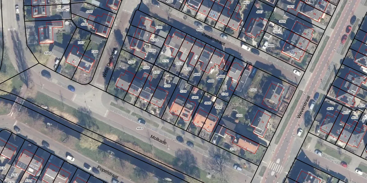 Gebruik de zoekbalk of klik op een perceel om informatie over het perceel te bekijken.