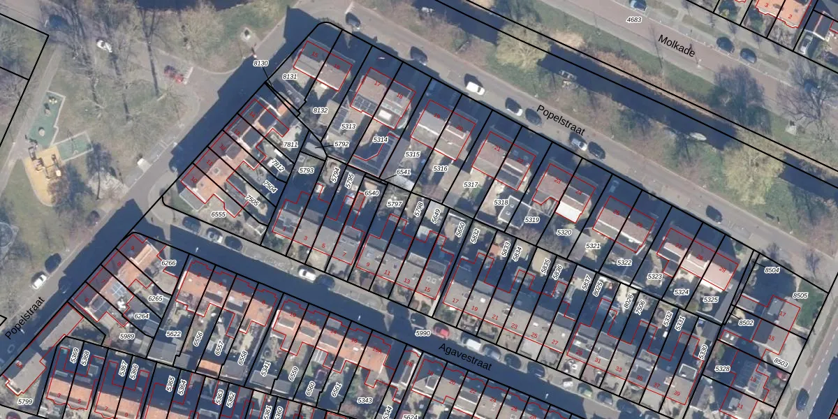 Gebruik de zoekbalk of klik op een perceel om informatie over het perceel te bekijken.