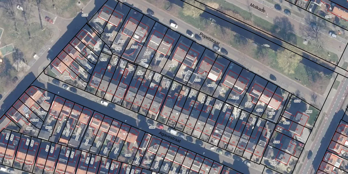 Gebruik de zoekbalk of klik op een perceel om informatie over het perceel te bekijken.