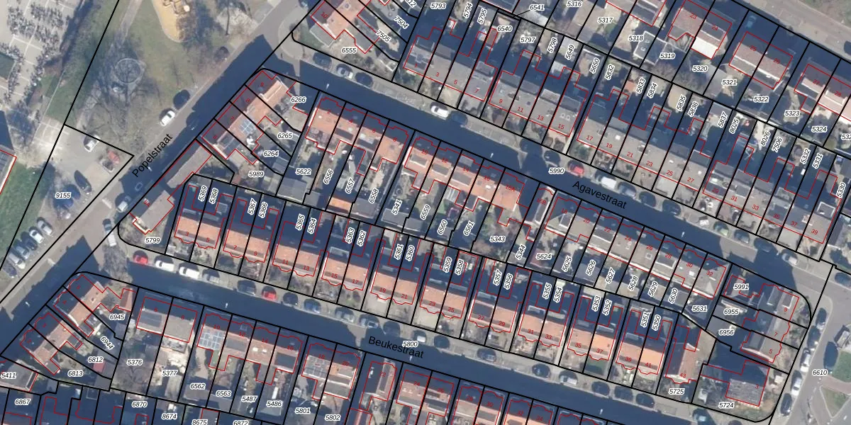 Gebruik de zoekbalk of klik op een perceel om informatie over het perceel te bekijken.