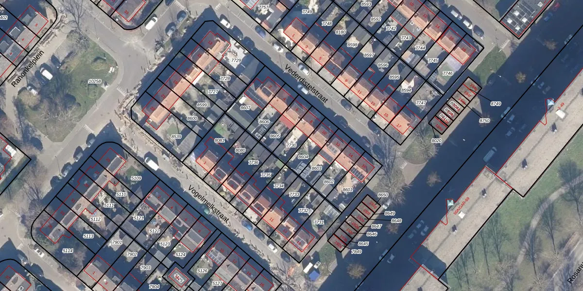 Gebruik de zoekbalk of klik op een perceel om informatie over het perceel te bekijken.