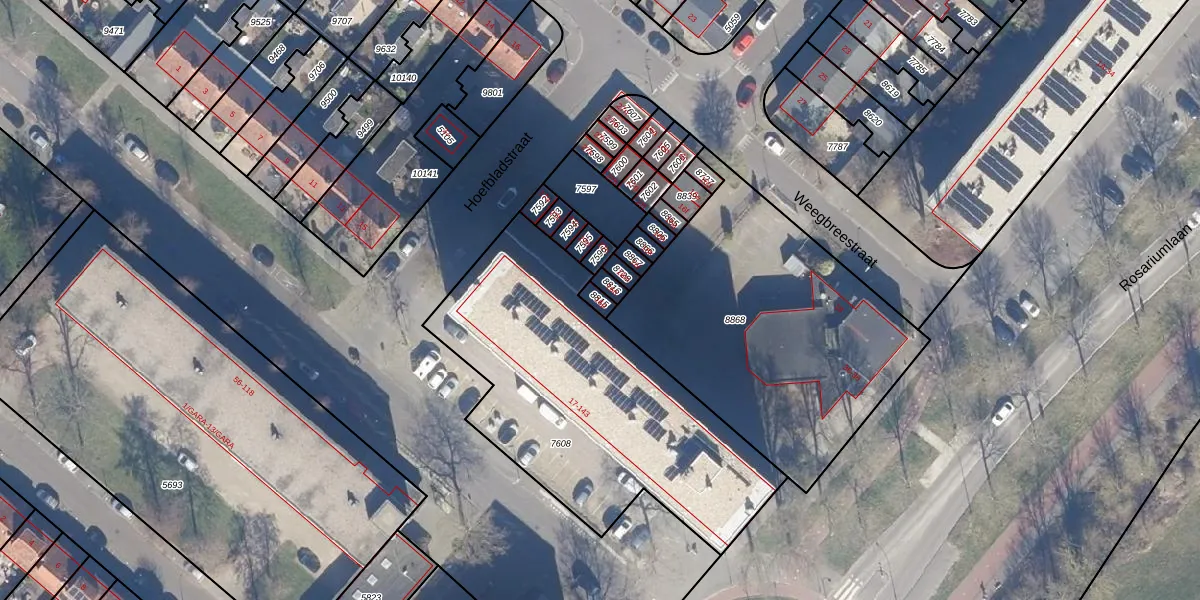 Gebruik de zoekbalk of klik op een perceel om informatie over het perceel te bekijken.