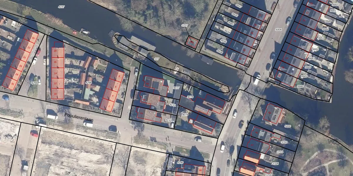 Gebruik de zoekbalk of klik op een perceel om informatie over het perceel te bekijken.