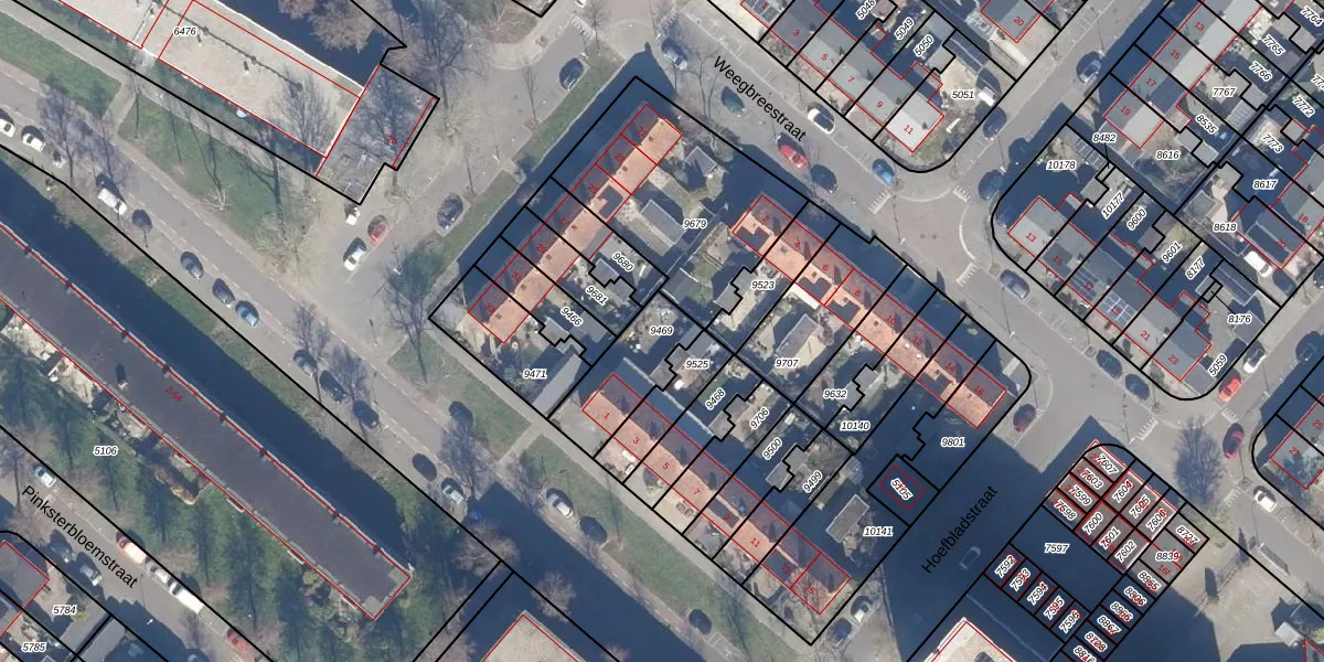 Gebruik de zoekbalk of klik op een perceel om informatie over het perceel te bekijken.