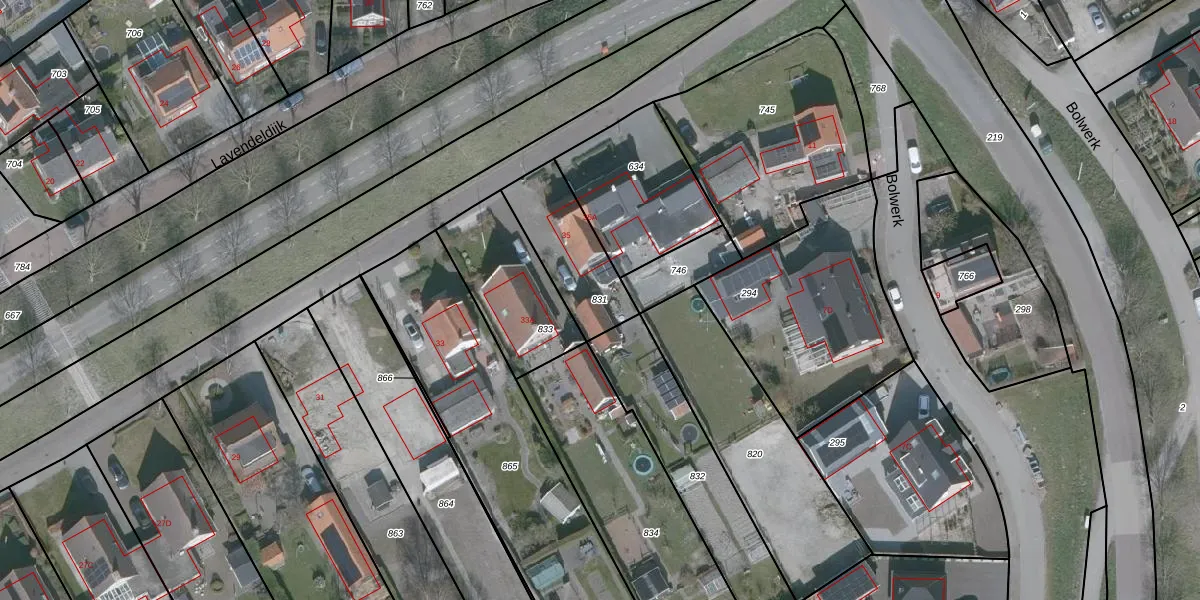 Gebruik de zoekbalk of klik op een perceel om informatie over het perceel te bekijken.