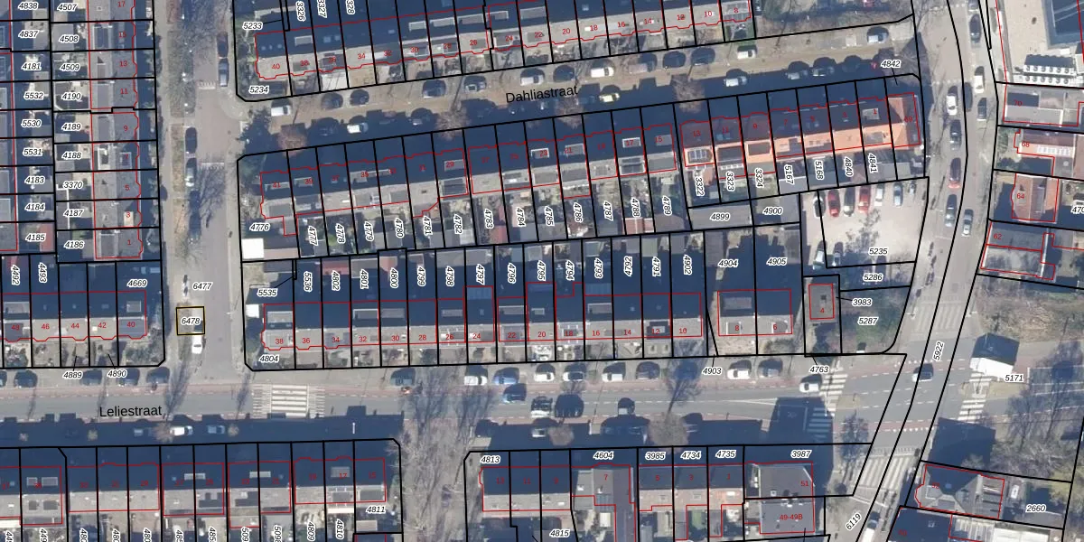 Gebruik de zoekbalk of klik op een perceel om informatie over het perceel te bekijken.