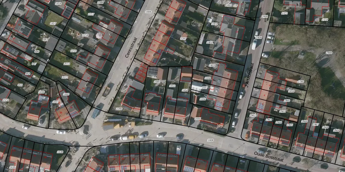 Gebruik de zoekbalk of klik op een perceel om informatie over het perceel te bekijken.
