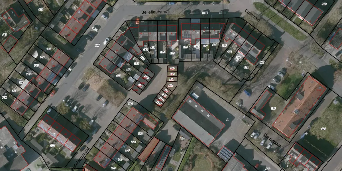Gebruik de zoekbalk of klik op een perceel om informatie over het perceel te bekijken.