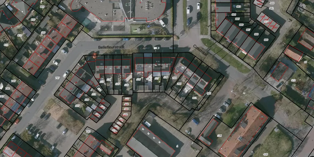 Gebruik de zoekbalk of klik op een perceel om informatie over het perceel te bekijken.
