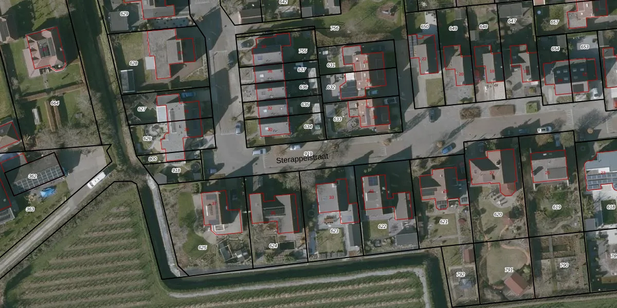 Gebruik de zoekbalk of klik op een perceel om informatie over het perceel te bekijken.
