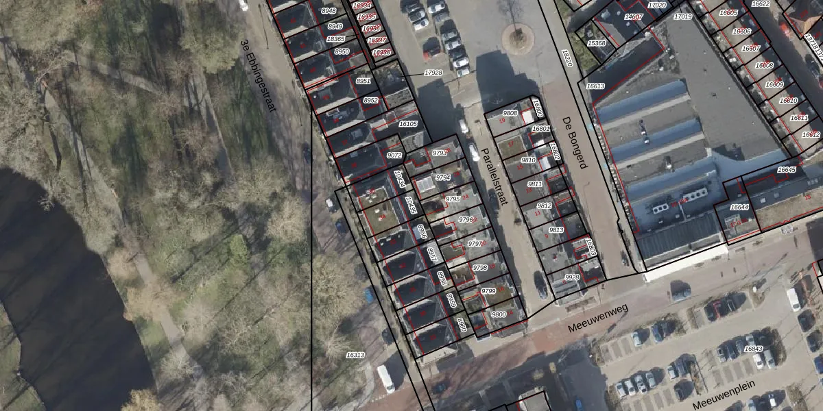 Gebruik de zoekbalk of klik op een perceel om informatie over het perceel te bekijken.