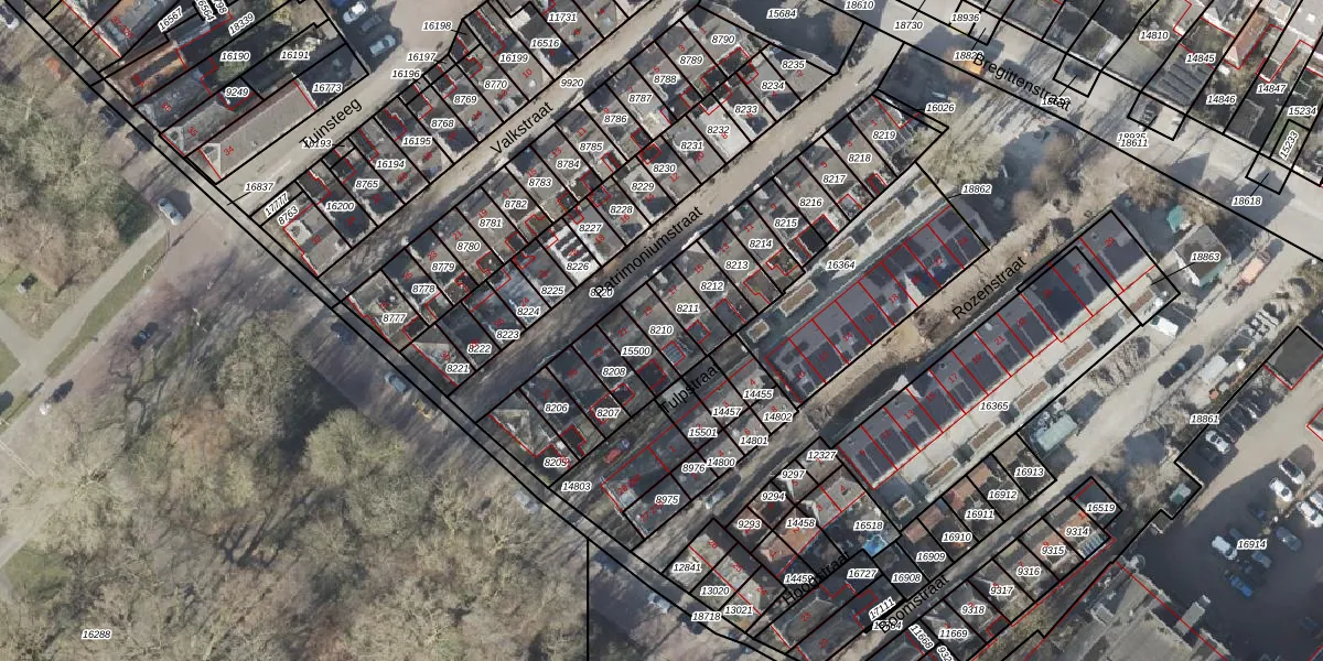 Gebruik de zoekbalk of klik op een perceel om informatie over het perceel te bekijken.