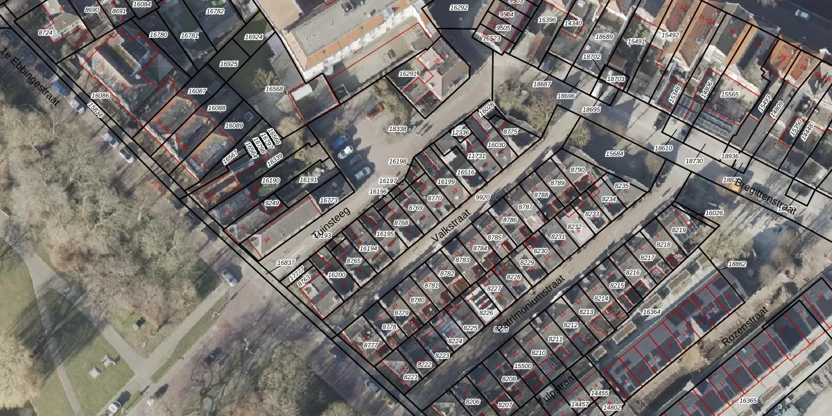 Gebruik de zoekbalk of klik op een perceel om informatie over het perceel te bekijken.