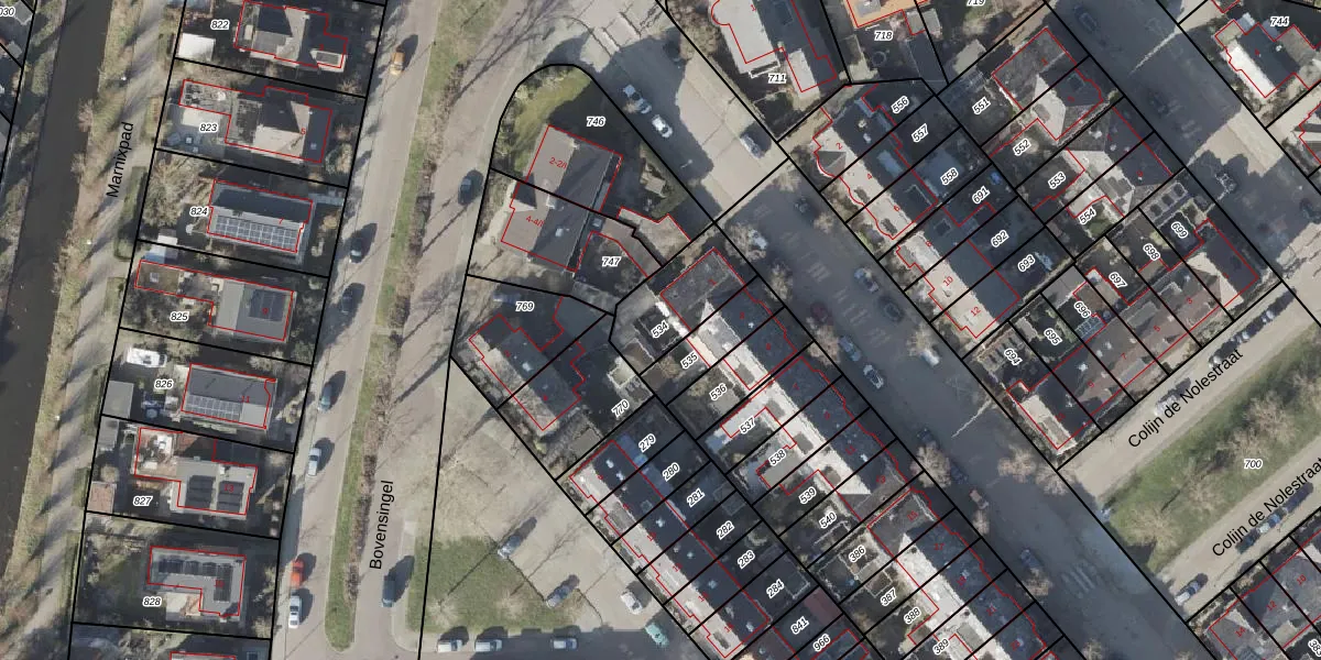 Gebruik de zoekbalk of klik op een perceel om informatie over het perceel te bekijken.
