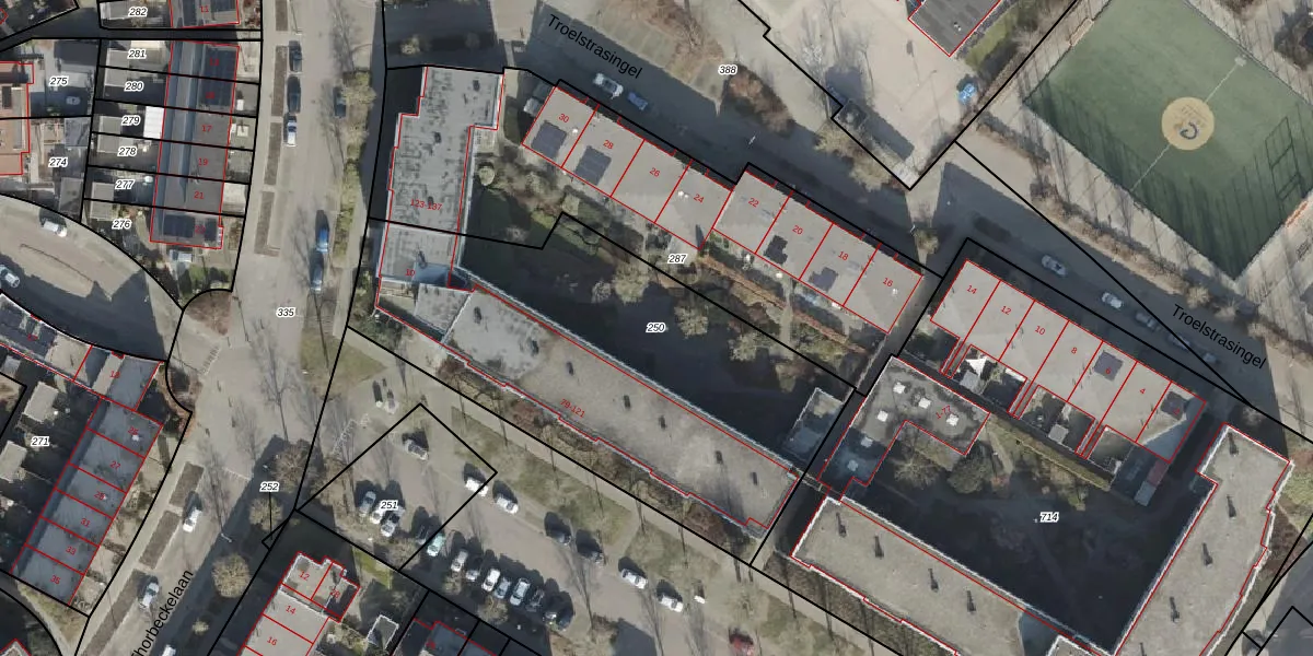 Gebruik de zoekbalk of klik op een perceel om informatie over het perceel te bekijken.