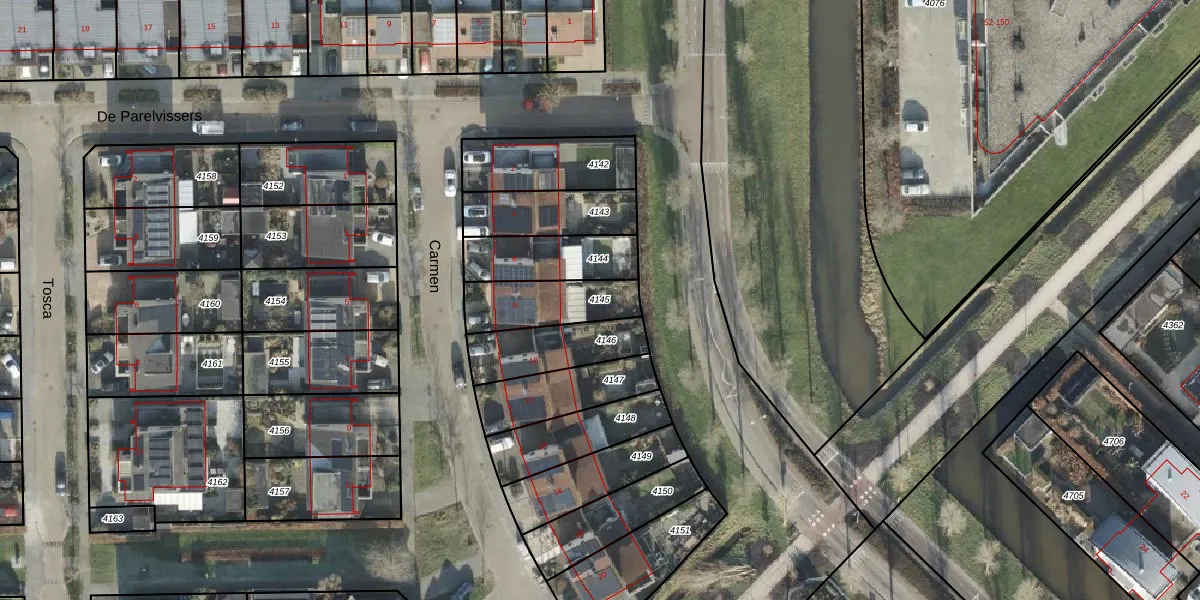 Gebruik de zoekbalk of klik op een perceel om informatie over het perceel te bekijken.