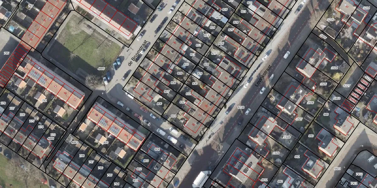 Gebruik de zoekbalk of klik op een perceel om informatie over het perceel te bekijken.