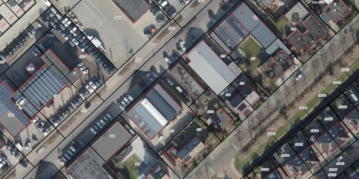Gebruik de zoekbalk of klik op een perceel om informatie over het perceel te bekijken.