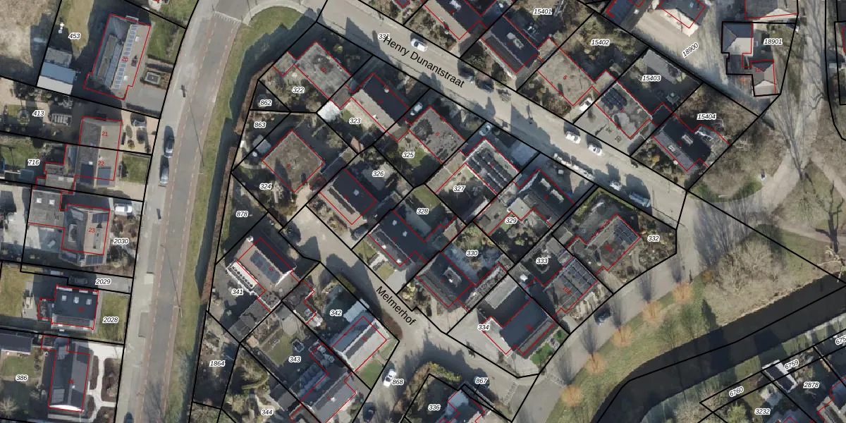 Gebruik de zoekbalk of klik op een perceel om informatie over het perceel te bekijken.